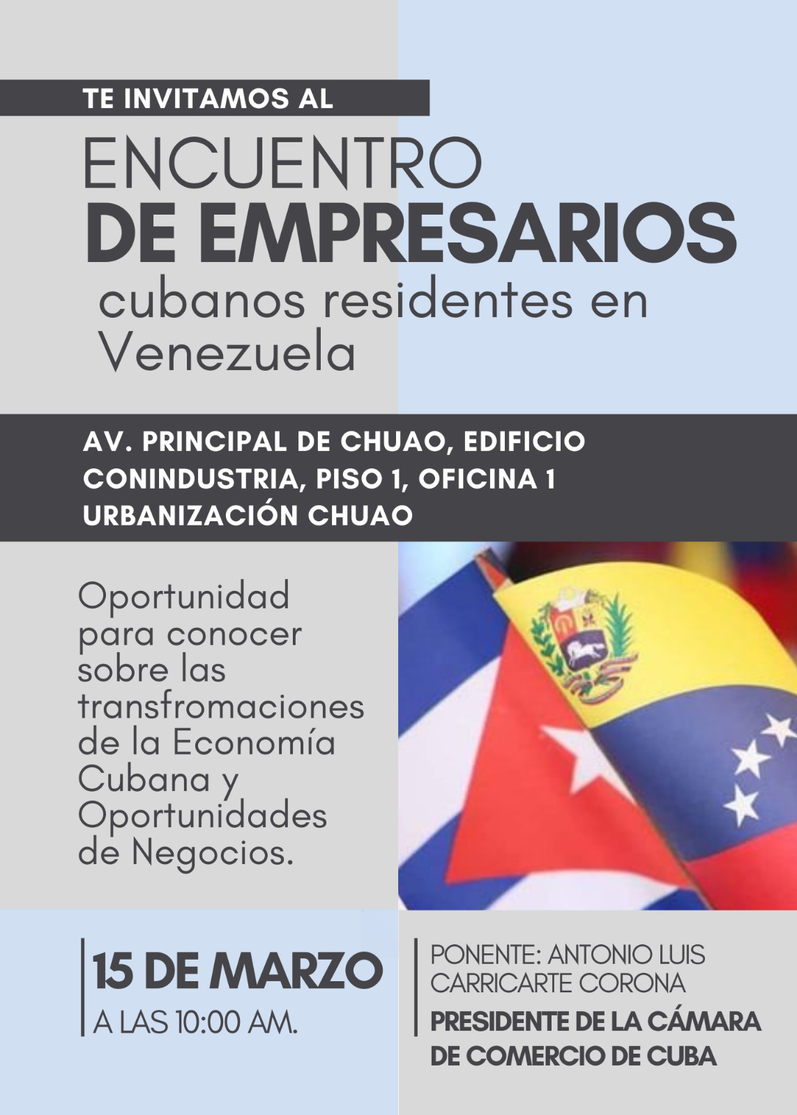Reunión de trabajo de la Junta Directiva Nacional de la Asociación de Cubanas y Cubanos Residentes en Venezuela (ACCREVEN) con pequeños empresarios cubanos residentes en el país realizado en el Hotel Melía Caracas.